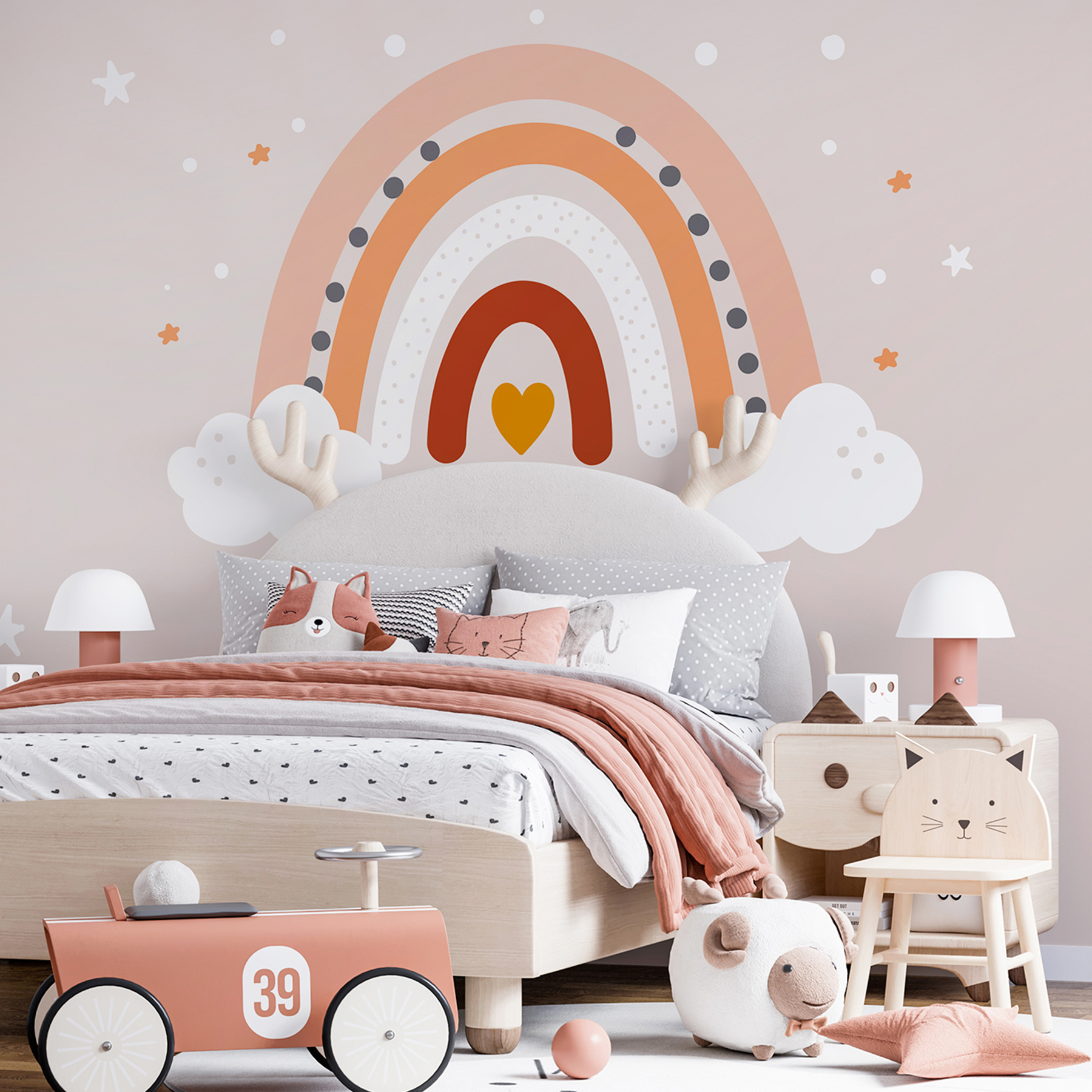 O nosso Painel de Parede Personalizado Arco-Íris de Aquarela é um adesivo autocolante, não necessitando de cola como os papéis de paredes convencionais.